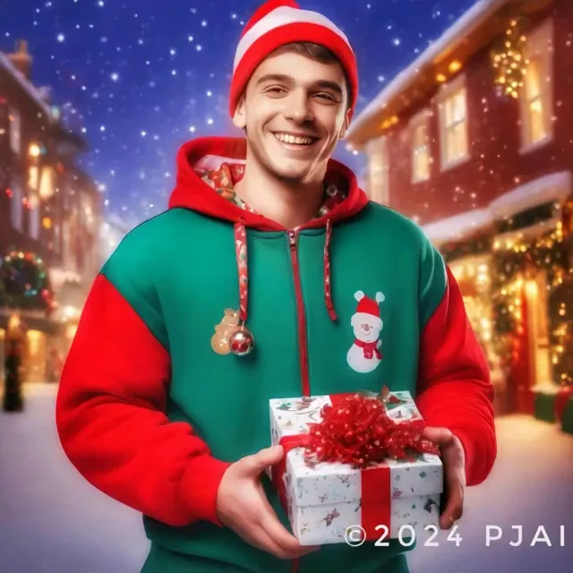 Walking in the snow towards the town Square past a huge Christmas tree