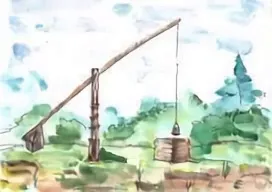 рычаг поднимается, ведро опускается в колодец