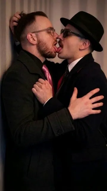 can they both wiggle tongues together then kiss deeply before finishing with a spit kiss
